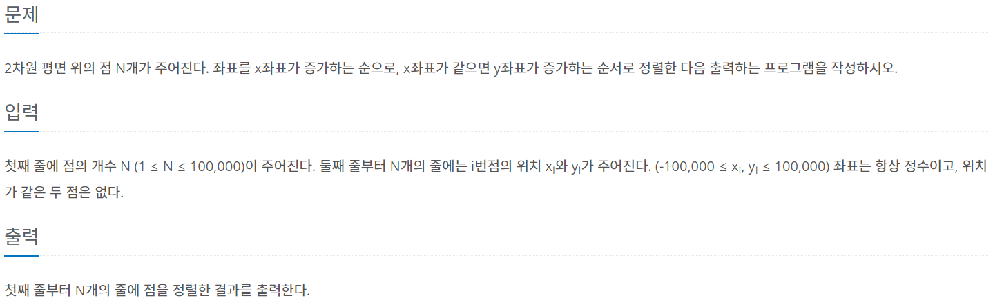 [11650] 좌표 정렬하기