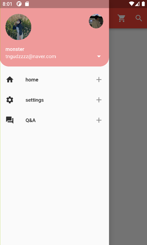 지난번 시간에 만든 AppBar에 있는 메뉴버튼을 누르면 좌측에서 Drawer menu가 나오게 구현하려고한다.