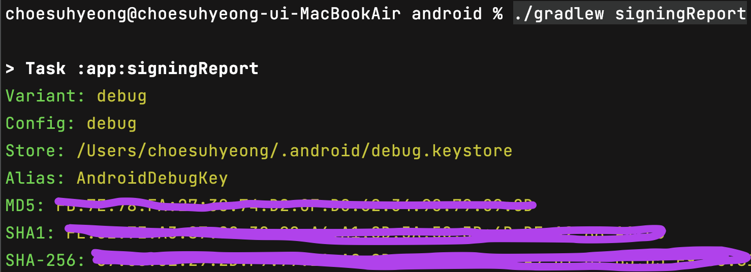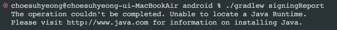 혹시나 하는생각에 Android Studio의 터미널에서 ./gradlew signingReport 해봤더니 바로되네...??