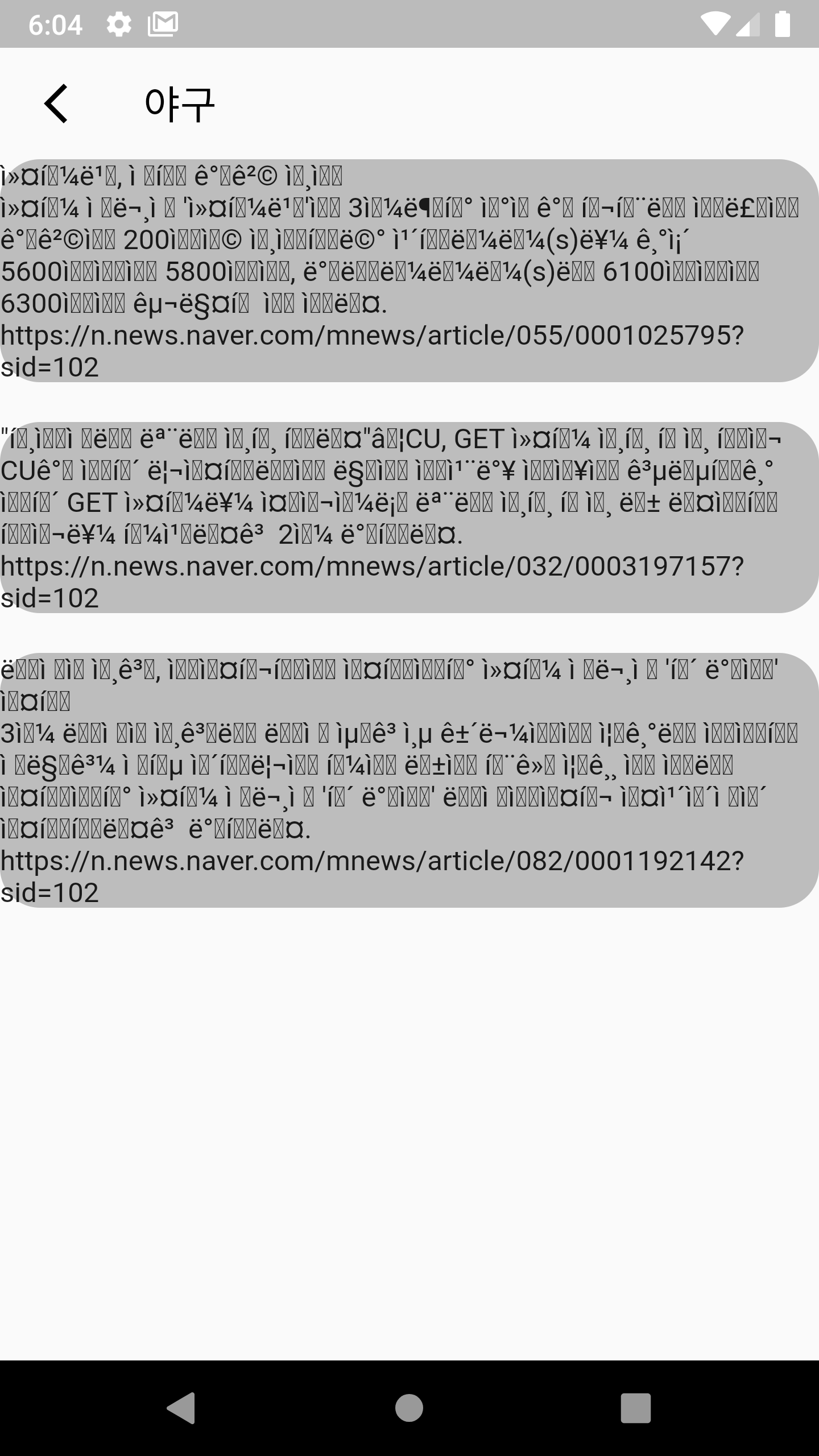 보기와 같이 한글 깨짐 현상이 나타났다.