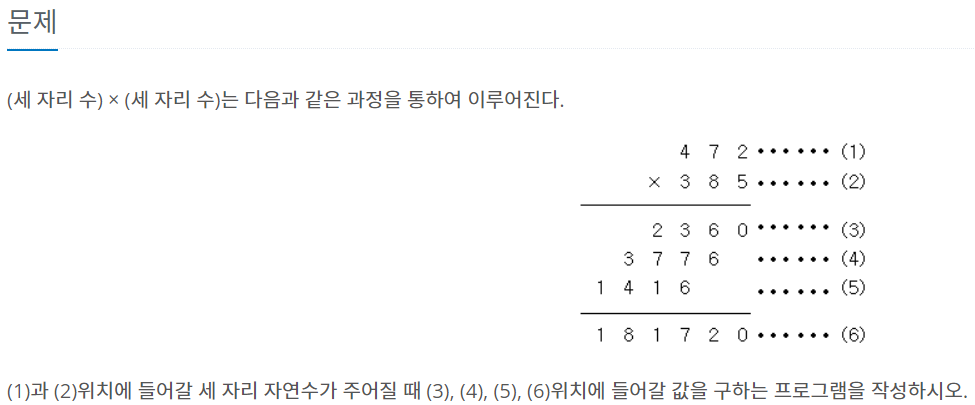 문제중 2588번을 좀 고민하게됬는데 한번 리뷰하도록 하겠다.