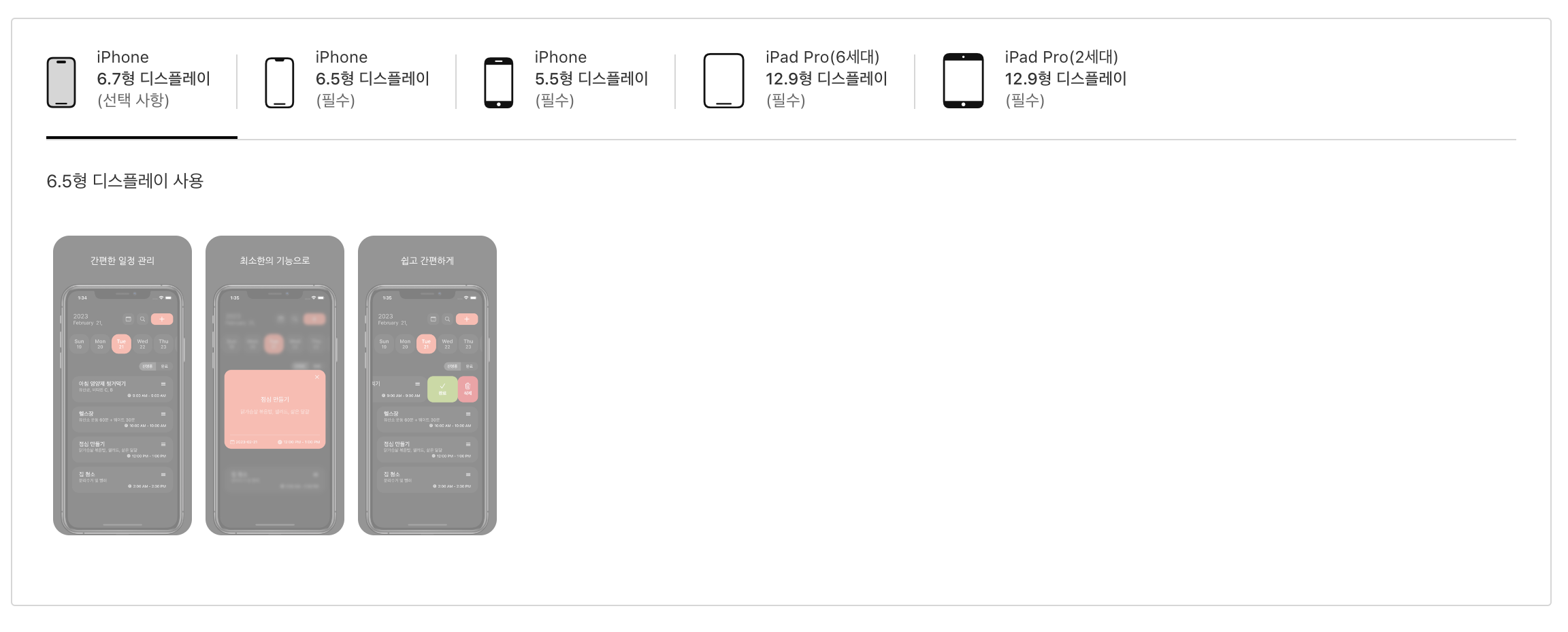위 사진과 같이 다양한 기기 스크린샷이 필요하다.