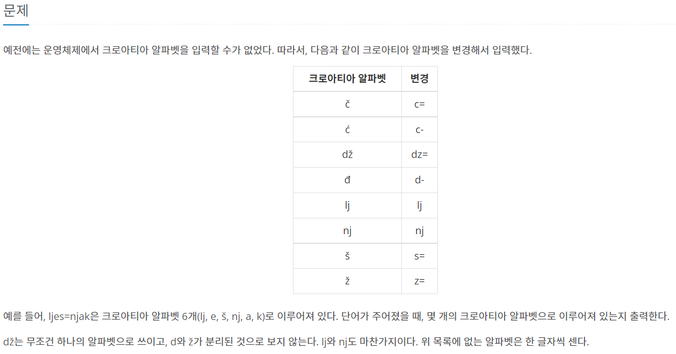 변경 문자들을 한 변수에 전부 저장한다음 in 을 통해 테크하고 해당 인덱스를 특정 기호로 변경하여 len으로 길이를 구했다. 사용한 함수는 in, len, replace 3가지이다.