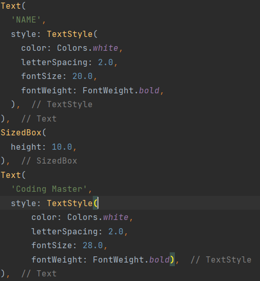 중간중간 SizeBox를 통해 위젯마다 공간을 주었다.